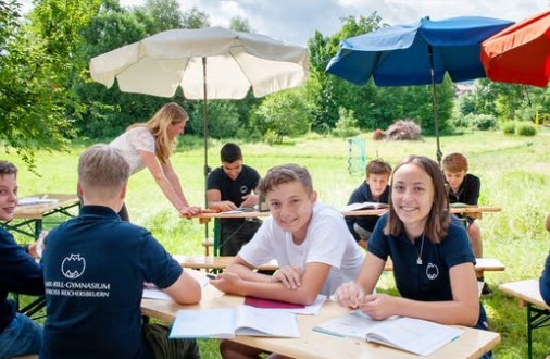 Гимназия Макс Рилль располагается на зеленом участке в Рейхерсбойнер и состоит из шести уникальных зданий. Центральное место занимает почти тысячелетний замок, в котором разместилась администрация, церемониальные залы, кухня, тренажерный зал, художественная мастерская, библиотека, проектные комнаты, кафе для учеников и общежития для мальчиков и девочек. Дополнительные строения включают школьный дом со специализированными классами по биологии, химии и физике, два новых корпуса с классами и отделением для мальчиков, а также актовый зал с музыкальным залом и театральной площадкой. Спортивные сооружения тоже впечатляют: гимнастический зал со скалолазной стенкой, корт с твердым покрытием, площадка для волейбола.
